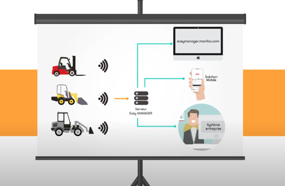 La solución de Manitou permite acceder y compartir en tiempo real todos los datos de las máquinas: estado, ubicación del material, seguimiento del mantenimiento, nivel de combustible, horas de uso, gestión de alertas, gestión de accesos, etc.